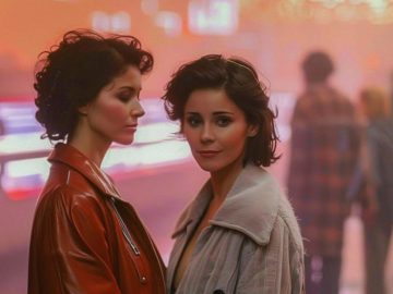 90s disco fashion, with bold sequined outfits, platform shoes, leather jackets, and eye-catching accessories dominating the vibrant nightlife scene.