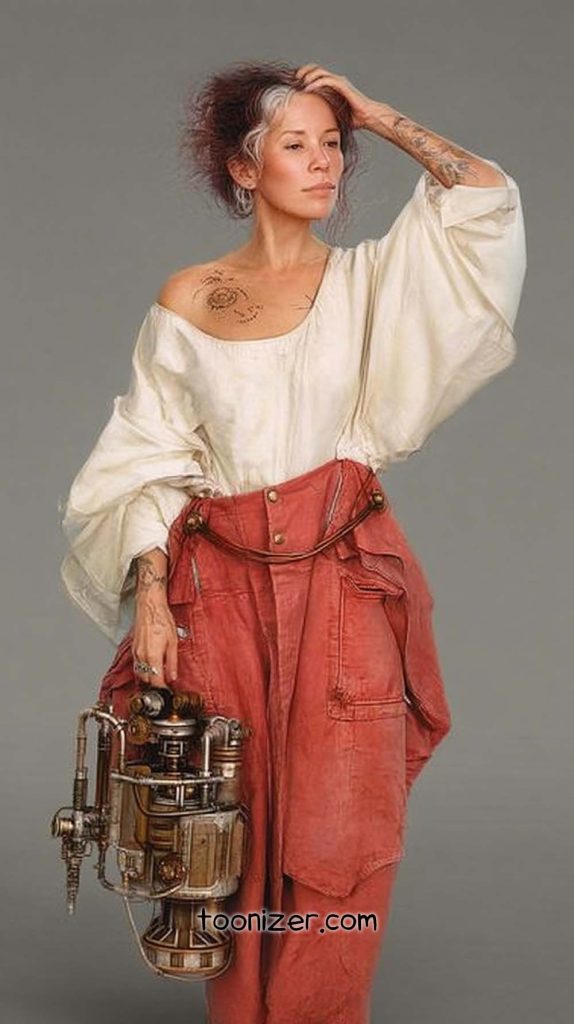 She used to wear galaxy print leggings and call it a revolution. Now she’s in a chrome cloak that adjusts to mood and temperature. She taps her chest to activate music, and yeah—it’s still the playlist you made her in 2025. Futuristic fashion has evolved, but her vibe hasn’t changed: bold, curious, and slightly chaotic.